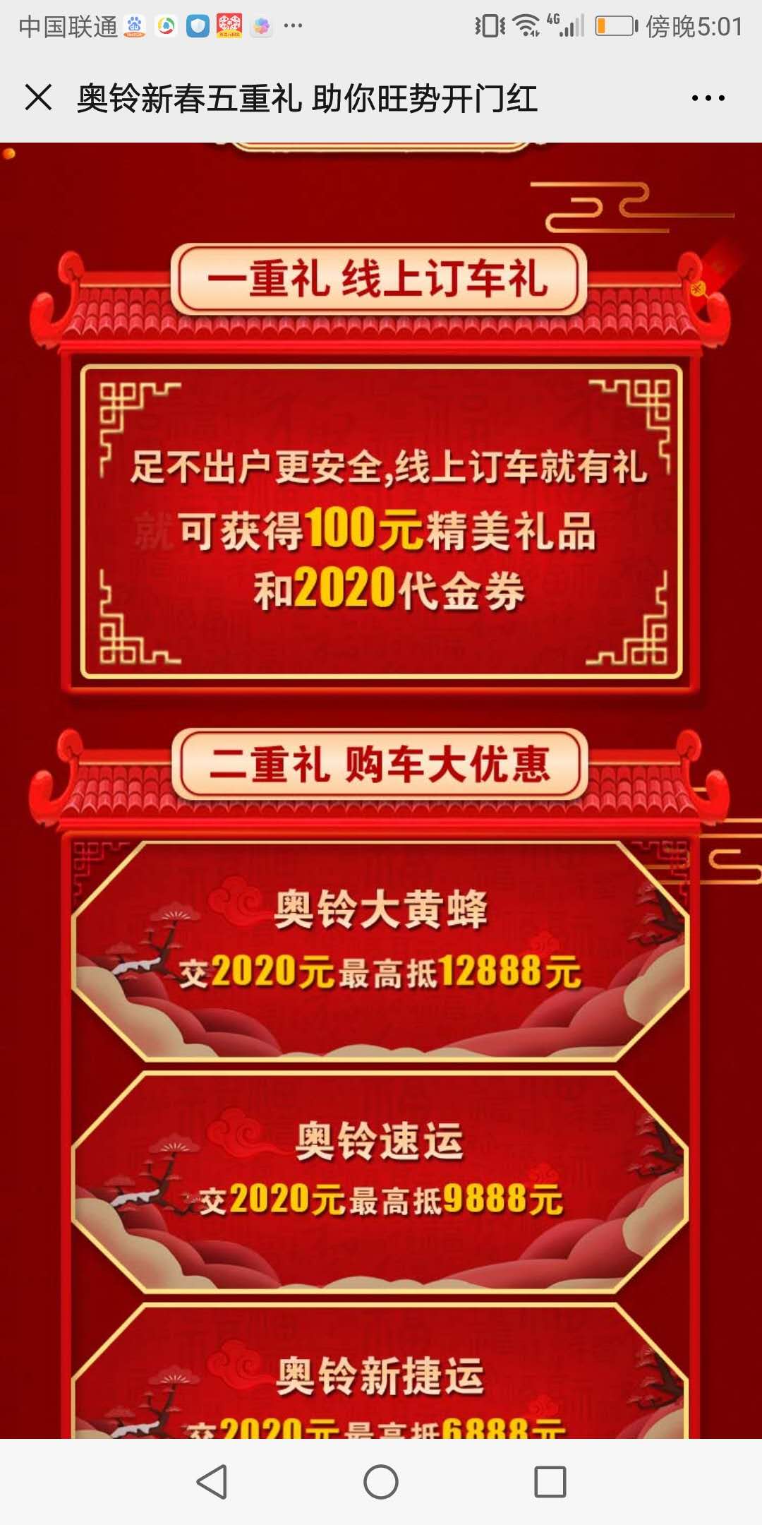 本次活動為線上購車的用戶提供五重大禮,包括交2020元購買奧鈴大黃蜂即可抵扣12888元,還有買一臺送一臺、半價車和國外游等抽獎活動,并為奧鈴客戶車輛行駛里程40-50萬公里的免費贈送“車輛養(yǎng)護禮包”,還提供了“0利息、0首付”的金融支持,方便用戶疫情過后更好靠車賺錢。