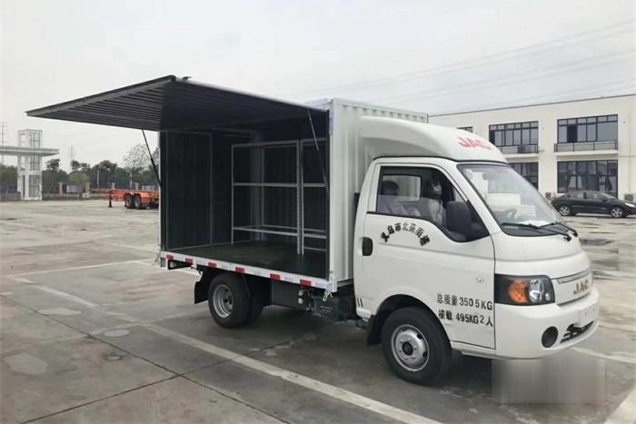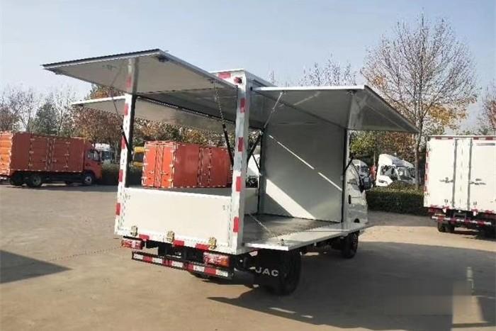 江淮轎卡售貨車的貨臺高度僅為0.748m,裝卸貨都更加方便。此外,貨箱四面均可開啟,對于商販而言,貨箱四面可開啟的功能大大提高了商品的曝光率。此外,江淮轎卡售貨車的轉彎半徑6.68m,保證了良好的機動性,商販們可以開著它穿街過巷,找到人流量最大的擺攤地點,為用戶創造更大價值。