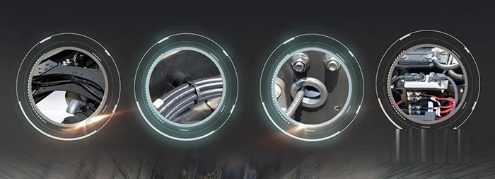 底盤電氣油管路采取上中下三層隔離設計、專用支架固定、橡膠皮套保護等措施,管路走向更標準、更可靠安全;免維護電瓶和線束升級,符合歐盟要求,安全可靠。