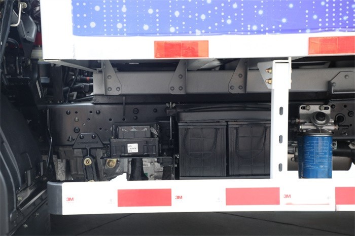 針對油耗與車輛自重呈正比的特性,S1暢盈版產品實現整車科學系統的減重。優化底盤布局,并采用鋁鎂合金+高強度鋼大梁、板簧采用少片簧設計,降低底盤自重;同時鋁合金輪轂車輪、輕量化高強度鋼貨廂、合金材料的后部及側面防護裝置等一系列新材料的應用配合模塊化設計、干重220kg的發動機,暢盈版產品在保障承載力的前提下,有效降低車輛自重,從而降低車輛空駛時的油耗。