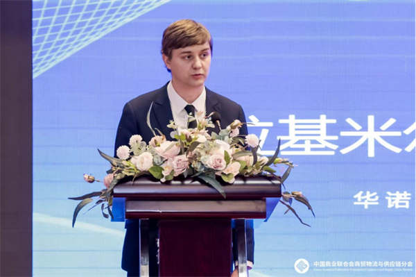 華諾俄翔(北京)貿(mào)易有限公司總經(jīng)理助理弗拉基米爾·葉夫根耶維奇·薩佐諾夫?yàn)榧钨e介紹了中俄貿(mào)易相關(guān)情況。